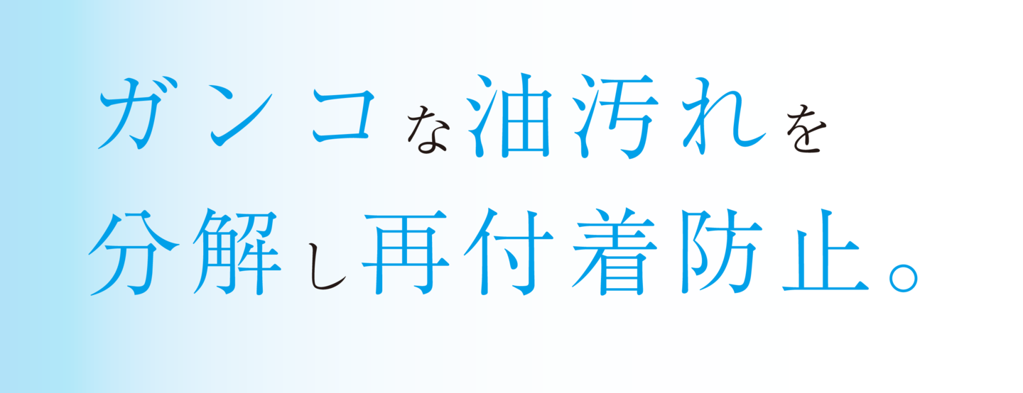 酸素(天然由来成分)の力で油やタンパク質等の頑固な汚れを素早く安全に分解。