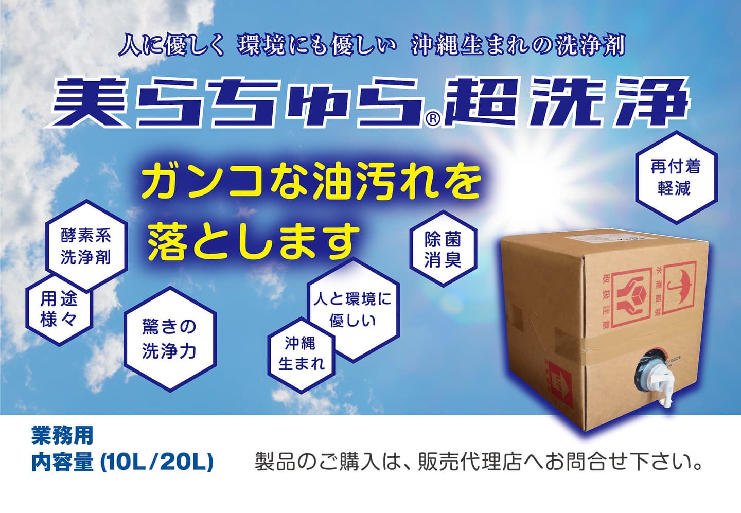 美らちゅら超洗浄は天然由来成分が肌を守り、油を乳化させずに分解するため環境への負担も低減します。